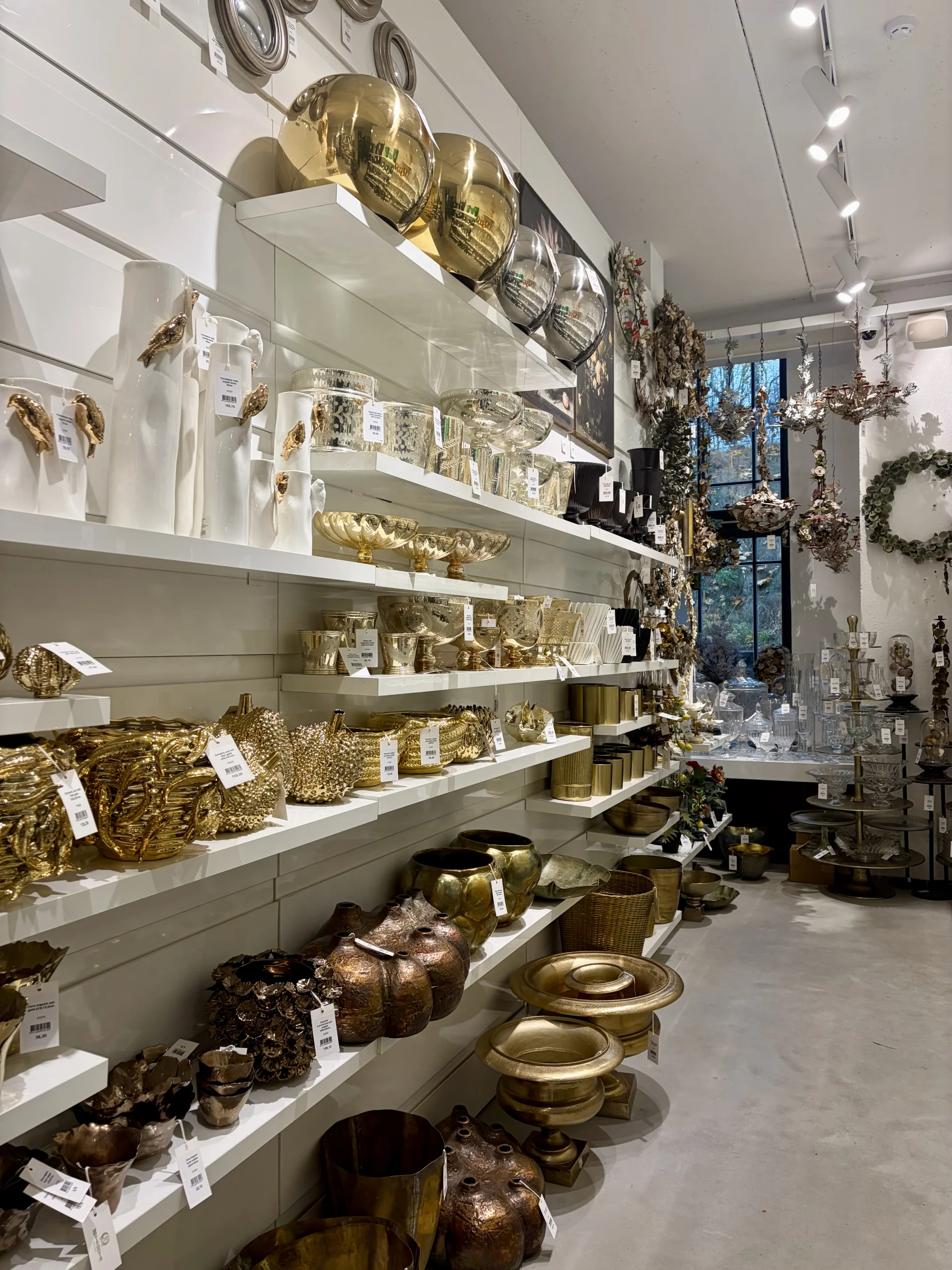 The spacious and light-filled store showcases the company’s own interior design collections. The assortment includes decorative vases, candle holders, artificial flowers and plants, seasonal decorations, and various interior elements. A special place is reserved for Shishi’s well-known Christmas collections – a rich selection of ornaments, baubles, light strings, artificial Christmas trees, and other festive decorations.